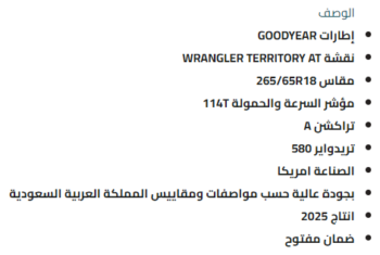 ماركة: جنوب افريقيا255/65/18 جوديير TERRITORY HT111H