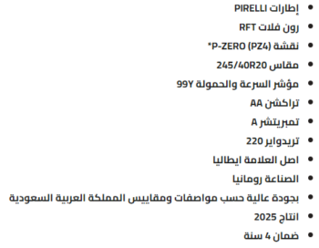 ماركة: بيرللي245/40/20 بيرللي رن فلات