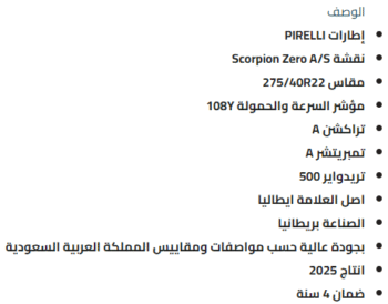 ماركة: بيرللي 2034295/40/22 بيرللي 2025